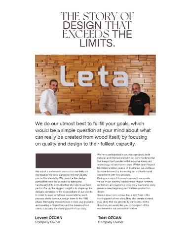 production mentality. We combine the design During our export focused approach, we create