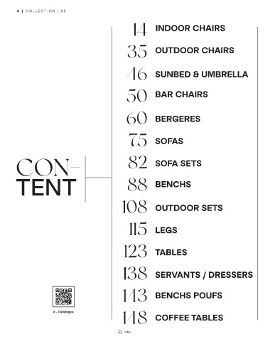 35 OUTDOOR CHAIRS 15 AMELYA / WOOD 24 ECE / SOCK 23 KASPER 17 MUFFET / STRIPE 14 SAGRA